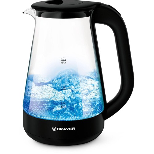 Максимальная мощность 2200 Вт Максимальный объем 1,7 литра Корпус из высокопрочного термостойкого стекла Внутренняя подсветка Автоотключение при закипании воды Отключение при отсутствии воды Противоскользящее основание Электропитание 220-240 В, ~ 50-60 Гц