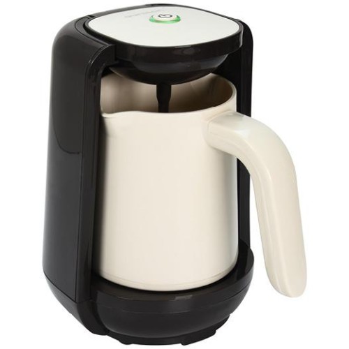 Кофеварка для кофе по-турецки TC0250 Oursson – отличный выбор для тех, кто предпочитает приготовление настоящего восточного кофе у себя дома. Нажатием всего одной кнопки кофеварка за 3,5 минуты приготовит 250 мл ароматного бодрящего кофе. В электрической кофеварке Oursson процесс варки кофе автоматизирован и занимает считанные минуты. Вы просто добавляете воду, молотый кофе и включаете кнопку - кофеварка сама приготовит для вас ароматный напиток. При нажатии кнопки включения загорится световой индикатор - приготовление началось. Вам больше не нужно следить за тем, чтобы кофе не убежал. Как только напиток будет готов, прозвучит звуковой сигнал и кофеварка отключится автоматически. Снимите кувшин с базы, держась за термоизоляционную ручку и перелейте свежеприготовленный напиток в вашу любимую кофейную кружку. Для удобства чаша прибора снабжена двумя носиками – кофе можно налить правой или левой рукой.В кофеварке так же предусмотрена функция автоматического отключения при недостаточном уровне воды в чаше (менее 100 мл) или при открытой крышке прибора. В комплекте: кофеварка для кофе по-турецки, мерная ложка, инструкция, гарантийный талон. Рецепт ароматного кофе по-турецки: 25 г молотого кофе тонкого помола и 240-250 мл воды