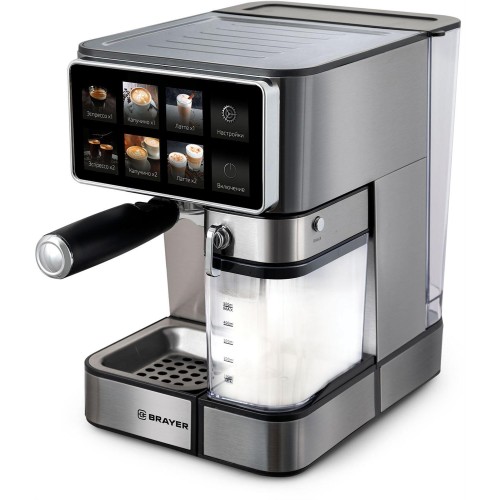 Максимальная мощность 1350 Вт Давление 20 бар Сенсорное управление Съёмный резервуар для воды объёмом 1,8 л Ёмкость контейнера для молока 0,5 л Приготовление эспрессо, латте, капучино Точный контроль температуры для получения высокого качества кофе Выбор объема эспрессо и американо: стандартный/двойной Одновременное приготовление 2-х чашек Съёмный поддон для капель Электропитание 220-240 В, ~50-60 Гц