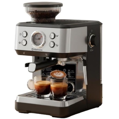 Рожковая кофеварка c кофемолкой 200гр, приготовление эспрессо и капучино, электронное управление, термометр, 1,6 л резервуар, 20 бар, насадка для капучино, съемный поддон, рожок с фильтром на 2 чашки, мерная ложка с уплотнителем в компл., автоотключение, 1050 Вт. Длина шнура 0,6м.