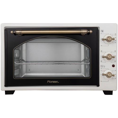 Печь электрическая с функцией конвекции, гриль, РЕТРО дизайн, мощность 2000 ватт, объем камеры печи 42 литра, температура нагрева от 100 до 250 градусов, таймер до 60 минут, внутренняя подсветка, металлическая решетка, плоский противень, ухват для противня, круглый противень для пиццы, вертел для курицы, насадка на вертел для приготовления шашлыка/кебаба, держатель для вертела, поддон для крошек