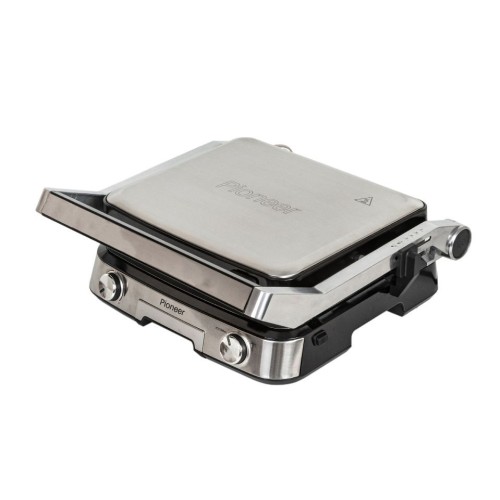 Тип управления: электронное Регулировка температуры: есть Варианты использования гриля: закрытый/открытый/105° Съемные нагревательные панели: есть, двусторонние (рифленая и плоская) Покрытие нагревательных панелей: антипригарное Размер панелей, мм.: 31x26 Съемный поддон для сбора жира: есть Индикаторы: работы, нагрева Комплектация: электрический гриль, 2 съемные панели, сменная панель, поддон для сбора жира, пластиковая лопатка, гарантийный талон, инструкция на русском языке Материал корпуса: сталь Цвет: серебристый Максимальная потребляемая мощность, Вт.: 2000 Электропитание, в., Гц.: 220-240, 50 Дополнительная информация: панели можно мыть в посудомоечной машине