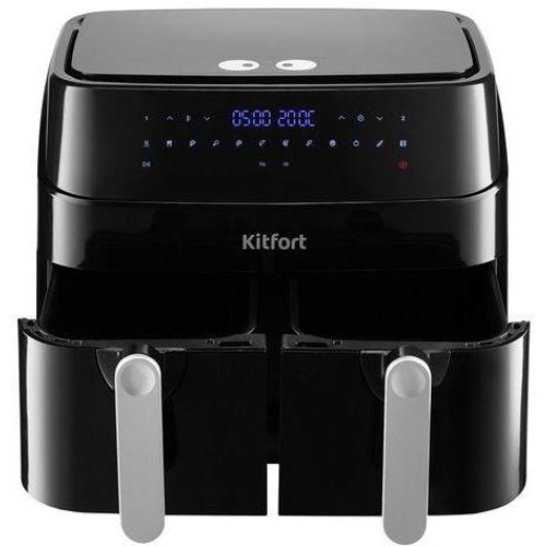 Мощность 1450-1750 Вт. Ёмкость поддонов 9 л (2 х 4,5 л). Количество программ приготовления 12. Температура 50-200°С с шагом 10°С. Таймер 1-60 мин с шагом 1 мин. Уровень шума до 50 дБ. Управление сенсорное. Длина шнура 1 м. Размер устройства 404 х 371 х 328 мм.