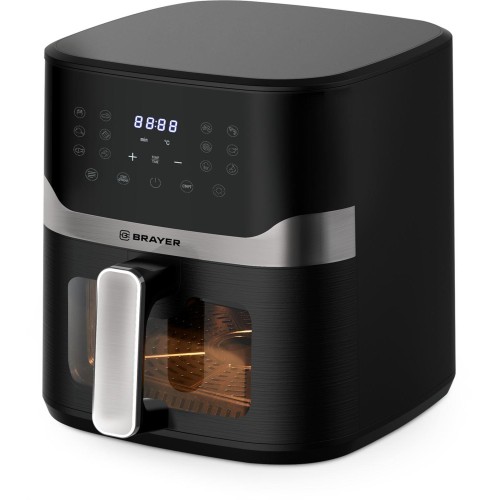 Мощность 1800 Вт Объем 10 л 12 программ: фри, мясо, голень, ребра, рыба, овощи, морепродукты, крылья, птица, пицца, сушка, кекс Корпус из высокопрочного термостойкого пластика Функция подогрева пищи Сенсорное управление LCD-дисплей Регулировка температуры 80–200 °С Таймер до 60 мин Съемная решетка с антипригарным покрытием Звуковой сигнал готовности блюда Электропитание 220-240 В, ~ 50-60 Гц