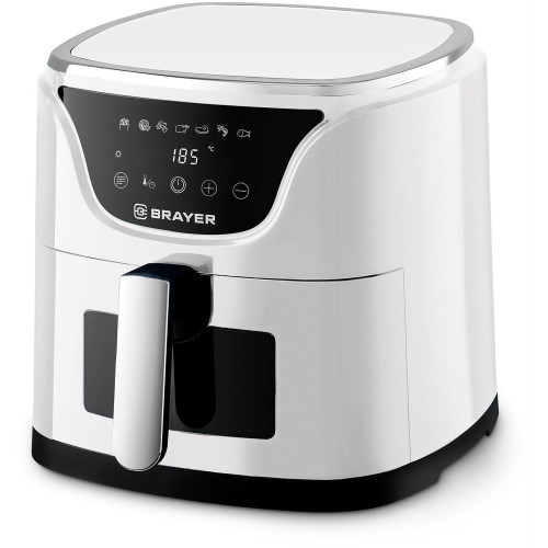 Мощность 1500 Вт Объем 5 л 7 программ: фри, пицца, курица, крылья, мясо, креветки, рыба Корпус из высокопрочного термостойкого пластика Функция подогрева пищи Сенсорное управление LCD-дисплей Регулировка температуры 80–200 °С Таймер до 60 мин Съемная решетка с антипригарным покрытием Звуковой сигнал готовности блюда Электропитание 220-240 В, ~ 50-60 Гц
