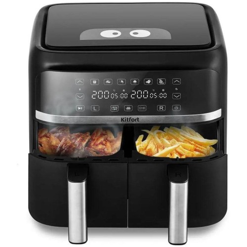 Объем чаши: 7.6. Количество программ/режимов: 6. Тип управления: электронное. Тип нагревательного элемента: ТЭН. Установка времени приготовления: есть. Антипригарное покрытие нагревательных частей: есть. Съемные формы: есть. Список режимов/программ приготовления: Чипсы, кура-гриль, рыба, выпечка, овощи, сушка овощей и фруктов. Установка температуры приготовления: есть. Информационный дисплей: есть. Индикатор включения: есть. Индикатор нагрева: есть. Звуковой сигнал: есть. Автоматическое отключение (защитное): есть. Вес товара: 7.1. Длина электрокабеля: 0.8. Габариты упаковки (ед) ДхШхВ: 0.32x0.34x0.37. Вес упаковки (ед): 8.3. Страна производства: Китай. Гарантия: 12 мес.. Цвет: черный. Материал корпуса: нержавеющая сталь/пластик. Размеры (ШхВхГ): 33.3 х 36.7 х 31.7см. Мощность: 2850 Вт. Температура: 80 - 200 °С. Мощность: 2850 Вт. Температура: 80 - 200 °С. Нагревательный элемент: ТЭН. Управление: электронное. Количество программ/режимов: 6