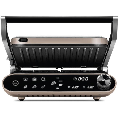 Мощность 2000 Вт Тип управления механический сенсорный Ручной режим Индикатор готовности к работе Таймер Звуковой сигнал Съемный поддон для сбора масла/жира Цвет корпуса серебро Материал корпуса нержавеющая сталь пластик Размеры одной панели 320?220 мм Материал панелей алюминий Тип покрытия панелей антипригарное Индикатор нагрева Индикатор питания Дисплей есть Подсветка дисплея Защита от поражения электрическим током класс I Защита от перегрева есть Регулировка времени приготовления 30-60 минут, с шагом 30 секунд Автоотключение Раздельное включение панелей с вариантом Регулировка температуры Диапазон температур нагрева 80-230°С Шаг выбора температуры нагрева 10°С Регулировка высоты да Максимальный угол открытия крышки 180° Длина шнура электропитания 1 м Габаритные размеры 352 ? 155 ? 344 мм Вес нетто 4,9 кг ± 3% Комплектация сервисная книжка съемный поддон для сбора масла/жира книга рецептов гриль съемные двусторонние панели двусторонние съемные панели (2 шт.)
