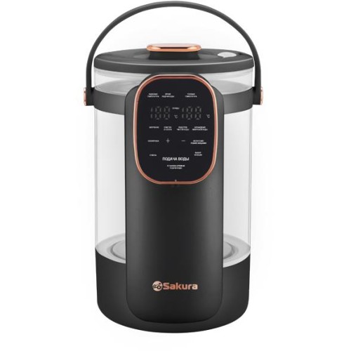 Термопот; Общий объём 3,8л; Полезный объём: 3л; Мощность: 1200Вт, LCD сенсорный дисплей; Колба из стекла; Кипячение; Функция "чистая вода"; Поддержание температуры; Блокировка кнопок; Защита от перегрева и включения без воды; Цвет: черный; Длина шнура: 0,85м.