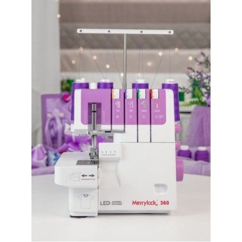 Merrylock (Мерилок) 360 - это простой и удобный современный оверлок, рассчитанный для домашнего использования и гарантирующий отличное качество шитья, равно как легких, так и плотных материалов, от шелка до джинсы.- Современный эффектный дизайн.- Помощник натяжения нити. Возможность оперативно и безошибочно корректировать натяжение, в соответствии с таблицей выполняемых строчек.- Базовый комплект наиболее важных краеобметочных операций.- Свободный рукав. Вы сможете просто шить манжеты и рукава круглой формы.- Регулятор давления прижимной лапки.- Ящик для обрезков.- Регулятор дифференциальной подачи ткани.- Регулятор ширины обрезки.- Двойная колоритная LED подсветка для освещения области шитья и области петлителя.- Удобная ручка для переноски.