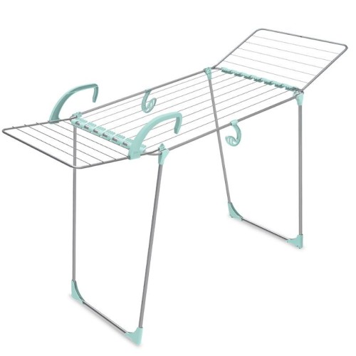(ДхШхВ)75х55х110см в разложенном виде.Съемная боковая секция, которую можно использовать как сушилку на радиатор для ускорения сушки ли как сушилку на ванну.Две линейки держателей для мелкого белья.Удобные крючки для сушки обуви.Колесики для удобного перемещения в помещении.Простой механизм складывания.Стальные струны с антикоррозийным покрытием.Пластмассовые наконечники для дополнительной устойчивости и защиты пола от повреждений подходит для использования в любых помещениях и на открытом воздухе Длина сушильного – 18 м.Максимальная нагрузка – 15 кг.Цвет серый.