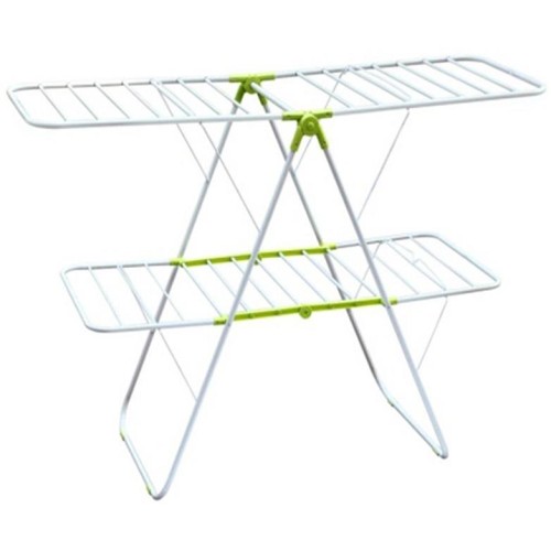 Сушилка для белья напольная, двухуровневая Размер: 147*60*98 см. Размер в сложенном виде: 105*60*9,5 см. Диаметр прутьев: 6/9 мм. Диаметр трубок каркаса: 16 мм. Максимальная рабочая длина: 19 м. Максимальная нагрузка: 25 кг. Материал: окрашенный металл, пластмасса. Металлические прутья увеличенной толщины (диаметр 6/9 мм) не прогибаются, позволяют сушить белье без заломов, ускоряя сушку за счет лучшей вентиляции. Простой механизм складывания. Компактна в сложенном виде. Пластиковые накладки на опорах для устойчивости и защиты напольного покрытия.
