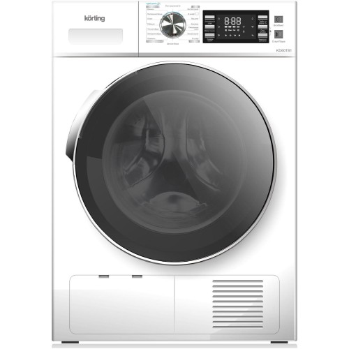 Сушильная машина; Габариты (ВхШхГ): 84,5х59,5х61,5 см; Максимальная загрузка: 8 кг; Электронное управление; LED индикация настроек и доп. функций; Цифровой дисплей; 16 программ; Сушка по влажности; Сушка по времени; Съемный резервуар для слива конденсата; Режим "Моя программа"; Индикация загрязнения фильтра; Индикация заполнения резервуара; Функция "Защита детей"; Функция "Защита от сминания"; Режим "Турбо"; Отложенный старт: до 24 часов; Полка для деликатной сушки в комплекте; Цвет: белый; Класс энергопотребления: B