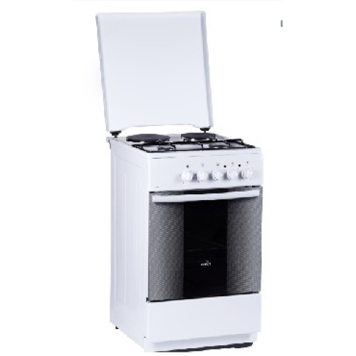 Размеры (ШхГхВ) 50x54х85см, объем духовки 50 л, 4 конфорки, метал. крышка, хоз. отсек, комбинированная (верх-2-газ/2-электро), электрическая духовка, профильная решетка стола, подсветка