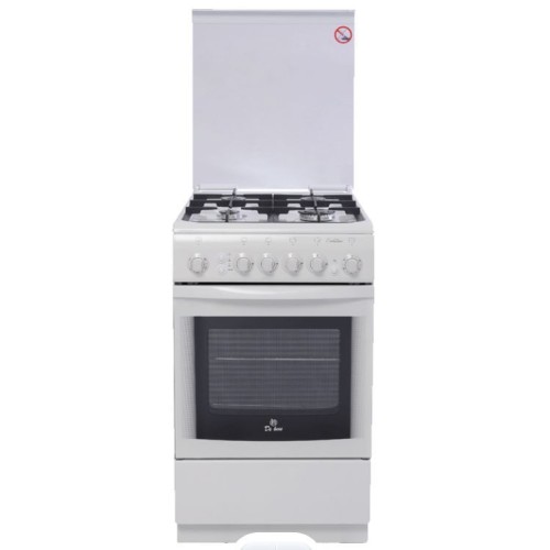 Габариты 850*500*600 Вес, кг - 38 Объём духовки 54 л Основные характеристики варочной поверхности: Электроподжиг 4 газовые конфорки 1,0/1,7/1,7/3,0 кВт Основные характеристики духового шкафа: Электророзжиг Газ-контроль Терморегулятор Освещение Вертел Гриль Механический таймер. Комплектация: Большой противень Малый противень Решётка для жарки Чугунная решётка Стеклянная крышка рабочего стола Хозяйственный отсек Техническое описание: Цвет - белый