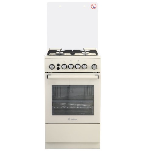 Типоразмер 50*50см, эл. розжиг в ручке рабочего стола и духового шкафа, терморегулятор, система "газ-контроль" духового шкафа, таймер, вертел с эл.приводом, газовый гриль, подсветка, чугунные решетки, БЕЖЕВЫЙ ЦВЕТ