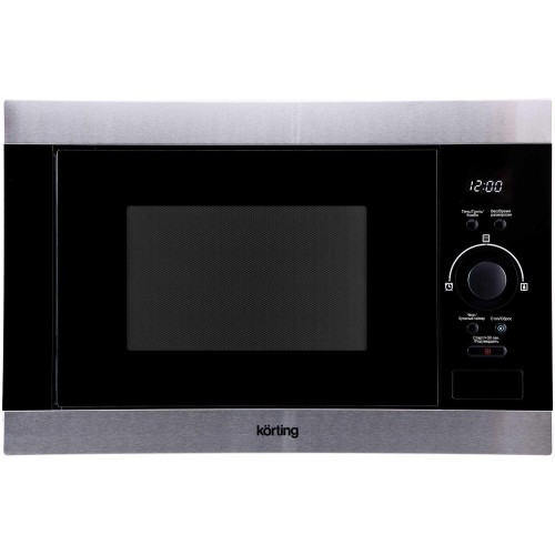 Встраиваемая микроволновая печь с грилем, панель: черное стекло+нержавеющая сталь, электронное управление, LED дисплей Cold White, объем печи: 25 л, функция гриля, 8 автоматических программ, функции разморозки по весу и по времени.