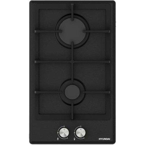 Газовая варочная поверхность, ширина 30 см, 2 газовые конфорки, фронтальные чугунные решетки, цвет - черный.