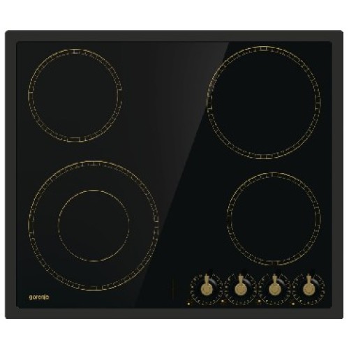 (ШхВхГ)59.5х9.2х51см.Встраиваемая.Цвет черный.4 конфорки Hi-Light.Индикатор остаточного тепла для каждой конфорки.Мощность подключения: 6,400 Вт.Материал рабочей поверхности стеклокерамика.Управление механическое.Тип переключателей поворотные.Вес 7,7кг.