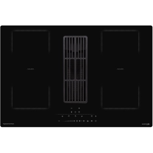 Индукционная варочная панель с вытяжкой. Тип панели: индукция, Технология нагрева: инвертор, Ширина: 77 см, Цвет: черный, Цвет подсветки красный, Количество конфорок: 4, Управление фронтальное слайдерное Материал поверхности: стеклокерамика, Объединение зон нагрева, Общая мощность: 7200 Вт, Бустер на каждую зону нагрева, Индикация остаточного тепла, Блокировка управления от детей, Защита от перегрева , Автоотключение при длительном использовании, Автоматическое определение размера посуды и регулировка мощности, Подогрев на низких температурах, Встроенная вытяжка, Мощность мотора вытяжки: 170 Вт, Таймер (на каждую зону). Габариты (ШхГхВ): 770*520*21 мм.
