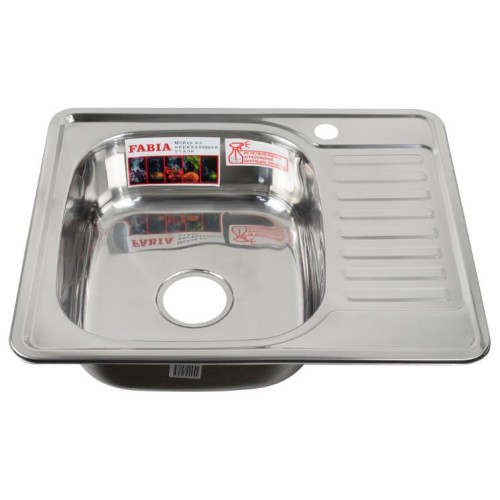 Врезная мойка FABIA из нержавеющей стали, отличный вариант для кухни, она прослужит многие годы. Классическая форма и хромированный цвет гармонично впишутся в любой интерьер и никогда не выйдут из моды. Оптимальный размер с площадкой для посуды позволяет свободно мыть посуду, без страха её разбить. Мойка врезается в столешницу. Специальное дополнительное антишумовое покрытие, нанесенное на обратную сторону чаш, разработано для снижения шума воды в мойке. Конструкция краев мойки, крепления и специальная уплотнительная прокладка обеспечивает максимально плотное прилегание к столешнице и защищает от протекания. Практичная площадка, расположенная по центру, даёт возможность вмонтировать любую понравившуюся модель смесителя. В комплекте сифон с большой горловиной с переливом, крепёж. Габаритные размеры: ширина 580 мм, длина 480 мм, глубина 160 мм, толщина стали 0,6 мм. Вес - 2.6 кг, объём - 0,0137 м3.