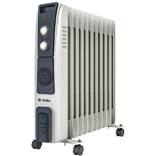 Обогреватель масляный с вентилятором o 11 секций o Современный дизайн o Быстрый и бесшумный нагрев o 3 режима регулировки мощности нагрева o Регулируемый термостат обеспечивает постоянную температуру в помещении o Световые индикаторы работы o Колеса и ручка для удобного перемещения o Отсек для хранения шнура o Защита от перегрева o Встроенный вентилятор мощностью 400 Вт для быстрого обогрева помещений o Максимальная площадь обогрева 25 м2 o Номинальная потребляемая мощность 2500 Вт o Диапазон номинальных напряжений: 220-240 В ~ 50 Гц o Цвет: светло-серый размер секции: 125x580мм