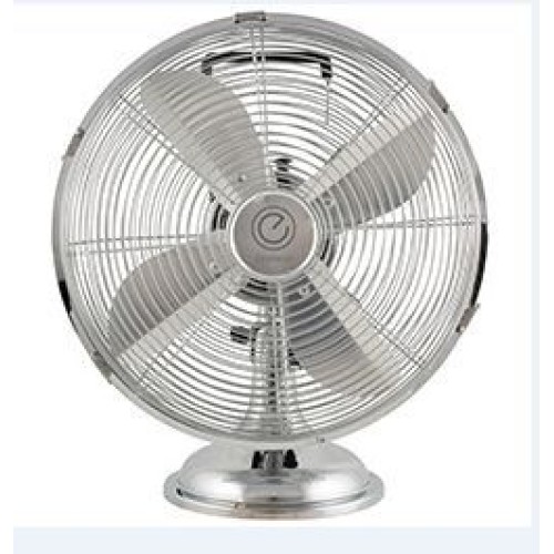 Серия Elegance. Диаметр 12". Современный дизайн. Металлический хромированный корпус. Алюминиевые лопасти. Ручка для переноски. Высота 41 см. 3 скорости . Функция поворота. Мощность 40Вт.