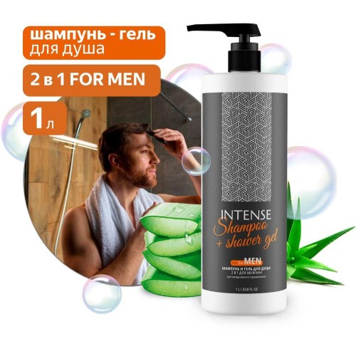 Шампунь - гель для душа INTENSE 2 в 1 FOR MEN Предназначен для мытья всех типов волос и ухода за кожей тела. Содержит высококачественные компоненты, позволяющие бережно и мягко очищать волосы и тело. Поддерживает в прекрасном состоянии структуру волос и кожи. Содержит экстракт Алоэ вера и Д-пантенол, способствует увлажнению, питанию и защите кожи. После применения кожа становится свежей, мягкой и ухоженной. Обладает тонизирующим эффектом и приятным ароматом. Нейтральный pH не нарушает естественный кислотно-щелочной баланс кожи. Идеально подходит для ежедневного применения. Способ применения: Нанести необходимое количество шампунь-геля на кожу головы и тело, вспенить, затем смыть теплой водой При необходимости повторить процедуру.. Условия транспортировки и хранения: Рекомендуется хранить в сухом, хорошо проветриваемом помещении на расстоянии не менее 1 м от нагревательных приборов, при температуре от +5 до + 25°С, при отсутствии непосредственного воздействия солнечного света.