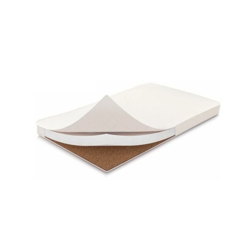 Материал чехла матраса состоит из 100% хлопка (жаккард). Основа - беспружинная. Толщина матраса 6 см. Съемный чехол с 3-х сторон на молнии. Ортопедический матрас обладает 2-мя сторонами жесткости: - латексированная кокосовая плита толщиной 1 см.(рекомендуется для новорожденных). - струттофайбер, объемный гипоаллергенный экологически чистый материал (5 см.) Дополнительно добавлен материал – спанбонд. Габариты, см (Д*Ш*В): 60*59*119