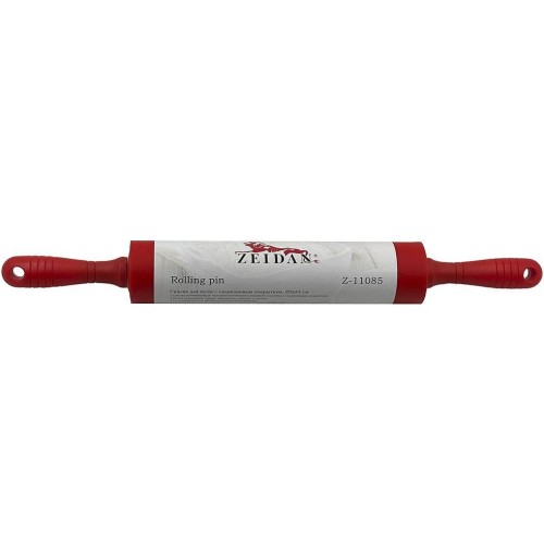 Скалка для теста ZEIDAN Z-11085 красная, Скалка для теста d 5х43 см (рабочая поверхность 25 см) из высококачественного пищевого пластика с силиконовым покрытием, подвижными ручками.