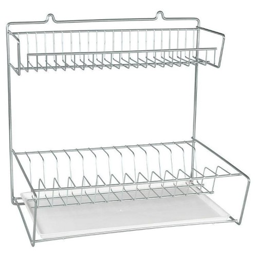 RUS-285001 Zn Сушилка для посуды настенная с поддоном, размеры 41х28.5х38 смСделана из стальной проволоки толщиной 5 мм с антикоррозийным покрытием. Цвет серебристый.