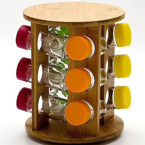 Этот набор включает в себя 12 баночек для специй, расположенных на бамбуковой подставкой, благодаря чему емкости не потеряются и всегда будут у вас под рукой. Предметы набора выполнены из высококачественного стекла. Баночки для специй в наборе имеют одинаковый размер. Плотно закрывающиеся крышки. Модный, элегантный дизайн, скасит интерьер Вашей кухни.