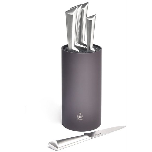 Набор ножей Лукас, 6 пр Состав набора: нож поварской – 1 шт, 20 см; нож для нарезки – 1 шт, 20 см; нож сантоку — 1 шт, 17.5 см; нож универсальный — 1 шт, 12,5 см; нож для чистки — 1 шт, 8,5 см, подставка из пластика — 1 шт Рукоятки ножей выполнены из корр