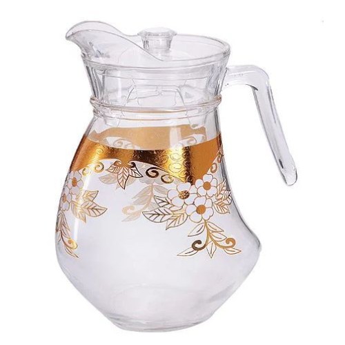 Кувшин LORAINE, выполнен из высококачественного стекла и пластика. Удобная форма носика и крышка позволяет защитить ваш напиток от попадания излишних запахов в ваш напиток. Подходит для: соков,морсов,компотов и любых интересных для Вас напитков. Кувшин так же имеет удобную ручку,которая упрощает использование его. Поверхность гладкая с золотистым рисунком .