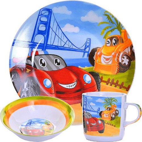 Предметы набора выполнены из высококачественной керамики и декорированы красочным рисунком. Изделия легкие и функциональные. Такой набор обязательно понравится вашему ребенку, потому что теперь у него будет своя собственная посуда с ярким и оригинальным рисунком. Набор посуды для детей включает в себя три предмета: суповую тарелку, обеденную тарелку и кружку. Набор упакован в красочную, подарочную упаковку. Подходит для мытья в посудомоечной машине. Для детей от 3-х лет.