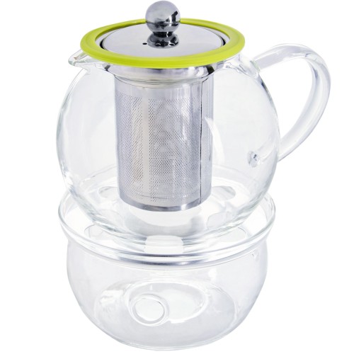 Чайник заварочный МВ (х12). Материал корпуса: боросиликатное стекло. Крышка: нержавеющая сталь. Фильтр: нержавеющая сталь, силикон. Колба д/подогрева: боросиликатное стекло. Подставка на колбе: нержавеющая сталь. Цвет: прозрачный, серебристый, салатовый. Объем: 800 мл. Высота чайника с крышкой: 13,5 см. Диаметр чайника (нижний): 12 см. Высота чайника с подогревателем: 19,5 см. Размер упаковки: 14,5 х 14 х 20,8 см. Упаковка: коробка. Вес: 590 г. Страна производитель: Китай.