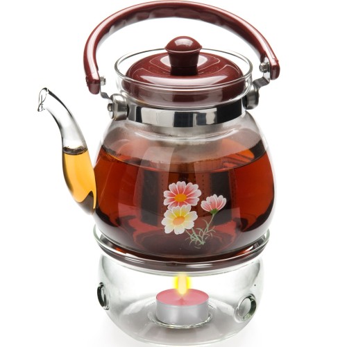 Чайник заварочный МВ (х12). Материал корпуса: боросиликатное стекло. Крышка/ручка: пластик. Фильтр: нержавеющая сталь, пластик. Колба д/подогрева: боросиликатное стекло. Подставка на колбе: нержавеющая сталь. Цвет: коричневый, зеленый, розовый. Рисунок: ромашки. Объем: 1,1 л. Высота чайника с крышкой: 15 см. Диаметр чайника: 13 см. Высота чайника с подогревателем: 21,5 см. Размер упаковки: 15,4 х 14,7 х 23,2 см. Упаковка: коробка. Вес: 720 г. Страна производитель: Китай.