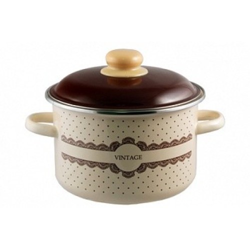 Кастрюля 5,5л цилиндрическая Vintage Материал эмалированная сталь. Толщина дна: 0.8 Толщина стенок: 0.8 Источник тепла: Все виды плит Крышка: эмалированная