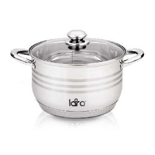 LR02-580 Кастрюля LARA (нерж) серия SONATA 16x10,5см, 2.1л, 7-СТУПЕНЧАТОЕ ДНО, комбо-полировка, крыш