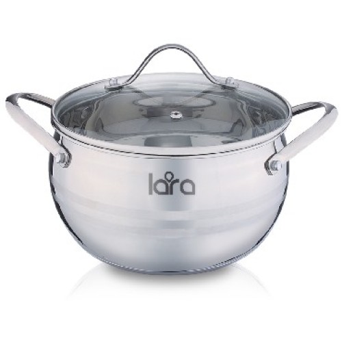 LR02-361 Кастрюля LARA (нерж) серия APPLE 28x15см,9.2л,стал.ручки,капсулир индукц дно,крышка