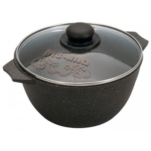 Кастрюля 3л. со стеклянной крышкой. Антипригарное покрытие Greblon на водной основе без PFOA. Серия "Гранит". Подходит для всех типов плит, кроме индукционных. Можно использовать в посудомоечной машине. Ресурс более 12 000 циклов, толщина покрытия до 55 мкр. Толщина дна 5,5-6мм., толщина стенок 3,6-4мм. Покрытие Greblon позволяет готовить с минимальным количеством масла, сохраняя вкусовые и полезные свойства продуктов. Литой толстостенный корпус не подвержен деформации, а утолщенное дно равномерно распределяет тепло по всей поверхности.