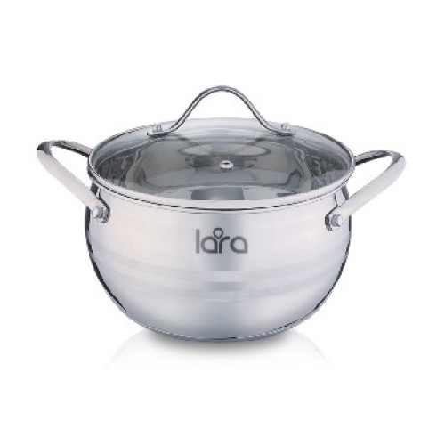 LR02-32 Кастрюля LARA (нерж) серия APPLE 18x10,5см,2.7л,стал.ручки,капсулир индукц дно,крышка стекло