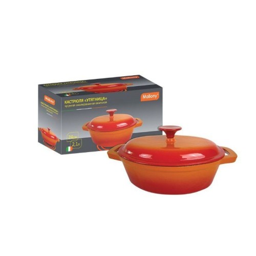 Кастрюля "УТЯТНИЦА" чугунная эмалированная овальная OCE-24, объем 2,1 л Длина без ручек — 24 см. Размер: 31*17,8*14,6 см (длина с ручками/ширина/высота с крышкой). Объем — 2,1 л. Вес — 3,75 кг. Толщина — 3 мм. Не ржавеет, эмалевое покрытие устойчиво к воздействию солей, кислот, щелочей. Безопасна для здоровья. Безупречные антипригарные свойства. Подходит для всех типов плит. Материал: чугун (эмалированный). Упаковка: инд цветная коробка. Не рекомендуется мыть в посудомоечной машине. Правила по уходу указаны на упаковке товара.