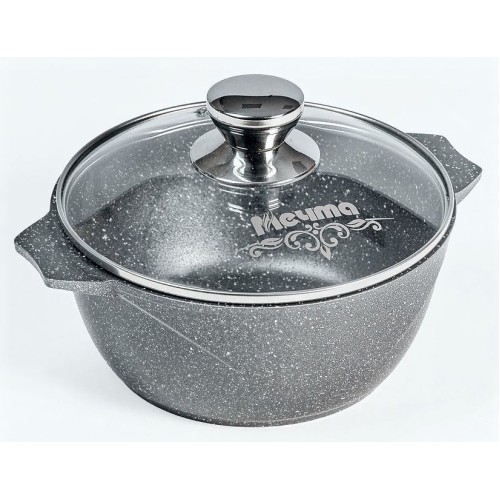Кастрюля 2л.со стеклянной крышкой. Антипригарное покрытие Greblon на водной основе без PFOA. Серия "Гранит". Подходит для всех типов плит, кроме индукционных. Можно использовать в посудомоечной машине. Ресурс более 12 000 циклов, толщина покрытия до 55 мкр. Толщина дна 5,5-6мм., толщина стенок 3,6-4мм. Покрытие Greblon позволяет готовить с минимальным количеством масла, сохраняя вкусовые и полезные свойства продуктов. Литой толстостенный корпус не подвержен деформации, а утолщенное дно равномерно распределяет тепло по всей поверхности.