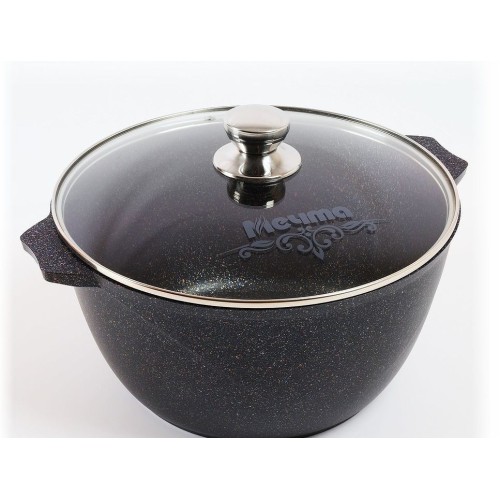 Кастрюля 6л со стеклянной крышкой. Антипригарное покрытие Greblon на водной основе без PFOA серии "Гранит star". Подходит для всех типов плит, кроме индукционных. Можно использовать в посудомоечной машине. Ресурс более 12 000 циклов, толщина покрытия до 55 мкр. Толщина дна 5,5-6мм., толщина стенок 3,6-4мм. Покрытие Greblon позволяет готовить с минимальным количеством масла, сохраняя вкусовые и полезные свойства продуктов. Литой толстостенный корпус не подвержен деформации, а утолщенное дно равномерно распределяет тепло по всей поверхности.