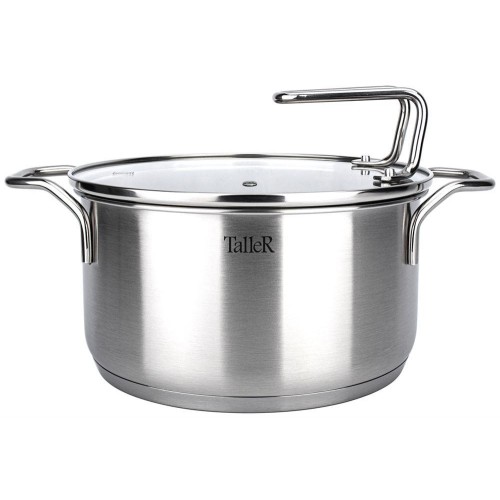 Кастрюля "Инесс" Объем 5 л. Материал: нержавеющая сталь 18/10 Крышка из закаленного стекла со специальным отверстием для выхода пара Удобные отметки литража на внутренней поверхности посуды Капсулированное дно с алюминиевой вставкой обеспечивает идеальное