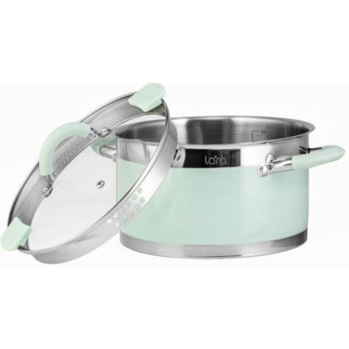 Материал - Нержавеющая сталь AISI 201. Полировка Комбинированная. Дно - Индукционное, Капсулированное. Мытье - Ручная мойка. Использование в духовке Нет. Отверстия для слива воды - 3 мм и 6 мм, сливной носик. Ручки - Нержавеющая сталь, Полые, Силиконовая отделка