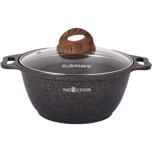 Кастрюля Kukmara из литого алюминия хорошо подходит для варки, тушения, томления и предварительной обжарки, так как имеет отличные теплораспределительные и теплоаккумулирующие свойства, и блюда в ней получаются сочными и ароматными. Цельнолитые ручки позволяют использовать кастрюлю в духовом шкафу без крышки. Функциональность посуды увеличивает стеклянная крышка из термостойкого стекла, благодаря которой можно наблюдать за приготовлением пищи и не снимать крышку каждый раз, теряя при этом изрядное