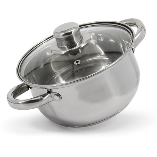 P595724 Laura Кастрюля с крышкой 18см, 2,2л. Выполнена из качественной нержавеющей стали. В комплекте стеклянная крышка с отверстием для выпуска пара. Толщина стенок 0,3мм. Трехслойное дно с алюминиевой вставкой для равномерного и быстрого нагрева, что зн
