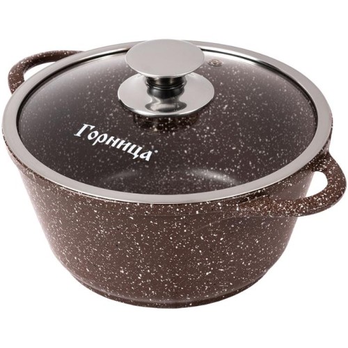 Толщина дна 5,5мм, стенки 3,8мм Объем, л./размер, см: 2.0л. 22см Материал: литой алюминий Коллекция/серия: Шоколад Торговая марка: Горница Толщина дна: 5.5 Толщина стенок: 3.8 Источник тепла: Все виды плит, кроме индукционной Тип упаковки: цветная коробка Крышка: стеклянная Внутреннее покрытие: антипригарное покрытие Pfluon Внешнее покрытие: антипригарное покрытие Pfluon