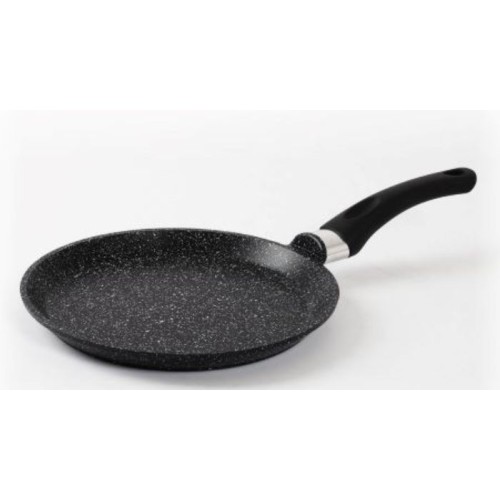 Сковорода блинная 24см с антипригарным покрытием серии "Гранит black". Подходит для всех типов плит, кроме индукционных. Можно использовать в посудомоечной машине.